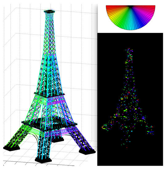 The particularities of these polarimetric images reside in the wavelength and the particular spatial resolution. These features create new processing difficulties. At this wavelength of 3 cm, scattering mechanisms are very anisotropic, and it is very hard to predict which kind of elements will dominate the signal response, because several interactions can occur with very small objects. However, it is interesting to check how and to what extent we can deduce information about the orientation of the main structuring element such as main beams of the Eiffel Tower or main fronts of more conventional towers, from the TerraSAR-X polarimetric mode.