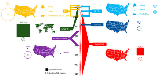 - USGS, Earth Resources Observation and Science (EROS) Center. Conterminous United States Projected Land-Use/Land-Cover Mosaics 1938–1992; USGS, EROS: Sioux Falls, SD, USA, 2015.