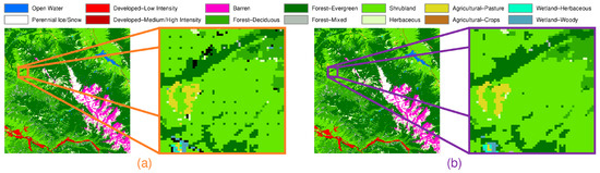 - Latifovic, R.; Zhu, Z.-L.; Cihlar, J.; Giri, C.; Olthof, I. Land cover mapping of North and Central America—Global Land Cover 2000. Remote Sens. Environ. 2004, 89, 116–127. [Google Scholar] [CrossRef]