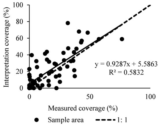 The correlation between the remote sensing interpretation and measured vegetation coverage.