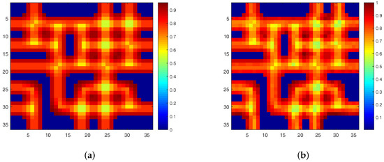 (a) The real sparseness map of synthetic data; (b) The estimated sparseness map of synthetic data.