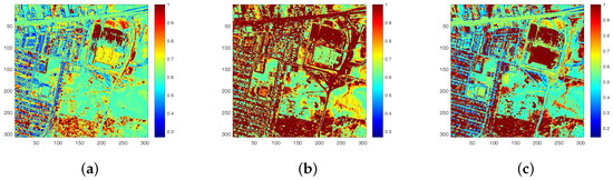 The sparseness maps of abundance results obtained by different algorithms. (a) -NMF; (b) -NMF; (c) DGC-NMF.