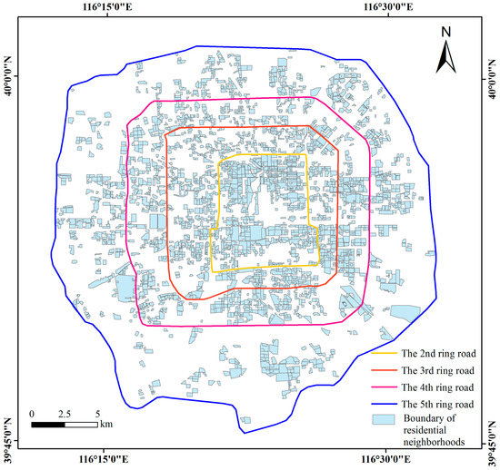 Spatial distribution of the residential neighborhoods within the 5th ring road of Beijing.