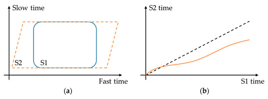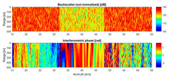 From Equations (5) and (6), it can be observed that the topographic phase does not depend on squint, while the system phase has an dependence. This allows for a separation between them by exploiting the multisquint interferograms, which is also the basis of the methods in References [17,18,19].