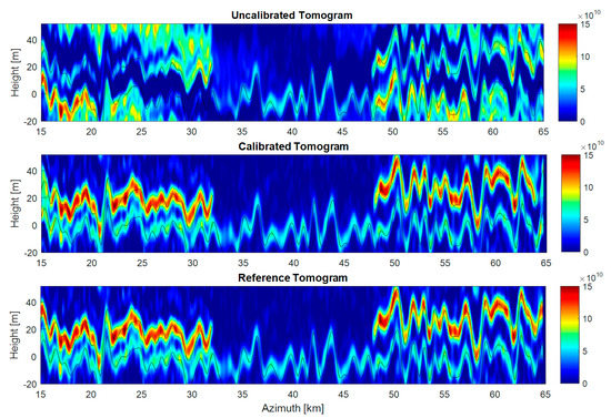 The tomographic processing (3D focusing) was performed for the case where there is no coherence between bistatic pairs acquired in different passes. Under the hypothesis of stationary reflectivity, the vertical power profile is estimated using each bistatic pair coherence as: