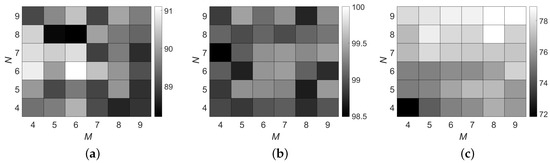 The influence of parameters on OA (%) in . Results on (a) Indian Pines; (b) KSC and (c) GRSS_DFC_2014 data sets. M is the number of sub-feature sets, and N is the number of features in each subsets.