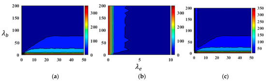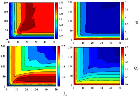 The range of was set to 0–200 with a gradient of 10, and the range of was set to 0–50 with a gradient of 1. Figure 3 shows the sparsity (the number of non-zero elements in the regression coefficients) of the block-sparse matrix , the elementwise sparse matrix , and the combined regression coefficients matrix of the regression model generated from LMTL for predicting N when changing and ; other properties had similar characteristics (Supplementary Material, Figure S1) and can be seen in the Appendix. According to Figure 3, the sparsity of decreased significantly with increasing , especially in the low values ranging from 0 to 75. The sparsity of decreased significantly with increasing , especially in the low values ranging from 0 to 3.5. However, the sparsity of was also affected by in the range of 0–20, and the sparsity of was also affected by in the range of 0–10. Therefore, and controlled the degree of penalty on and , respectively, but also interacted with each other. Both regularization parameters greatly affected the sparsity of . The degree of effects gradually weakened with the increase of or .