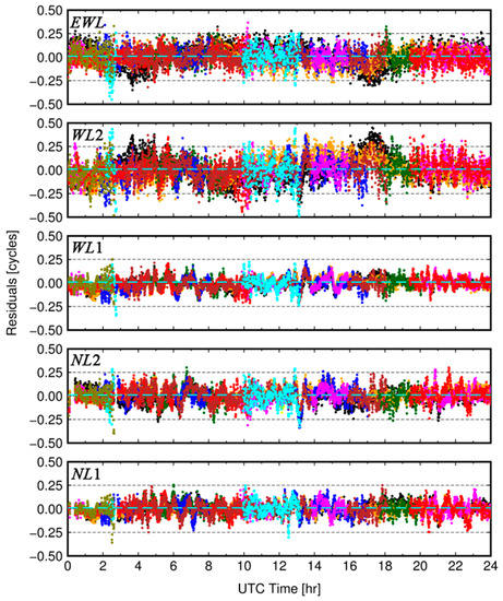 - Urquhart, L. An Analysis of Multi-Frequency Carrier Phase Linear Combinations for GNSS; Technical Report No. 263; Universtiy of New Brunswick: Fredericton, NB, Canada, 2009. [Google Scholar]