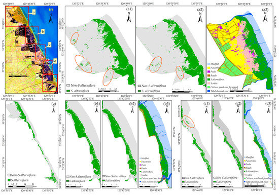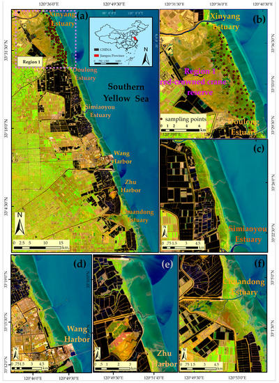 - Wang, A.; Chen, J.; Jing, C.; Ye, G.; Wu, J.; Huang, Z.; Zhou, C. Monitoring the invasion of Spartina alterniflora from 1993 to 2014 with Landsat TM and SPOT 6 Satellite Data in Yueqing Bay, China. PLoS ONE 2015, 10, e135538. [Google Scholar] [CrossRef] [PubMed]