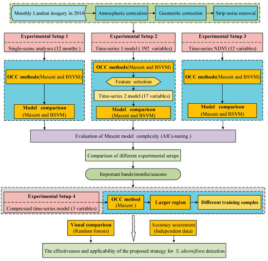 - Diao, C.; Wang, L. Development of an invasive species distribution model with fine-resolution remote sensing. Int. J. Appl. Earth Obs. 2014, 30, 65–75. [Google Scholar] [CrossRef]