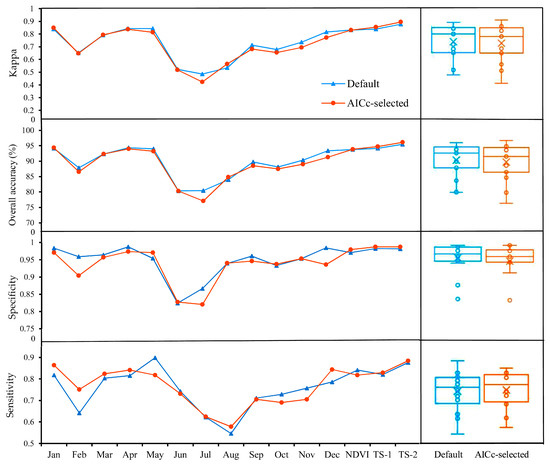 | Specificity: Default—AICc | 0.010 | −0.002 | 0.225 | 1.774 | 14 | 0.098 |