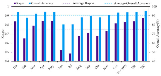 | TS-NDVI | 93.77 | 0.83 | 0.84 | 0.97 | 92.97 | 0.80 | 0.75 | 0.99 | 1.79 (p = 0.072) |