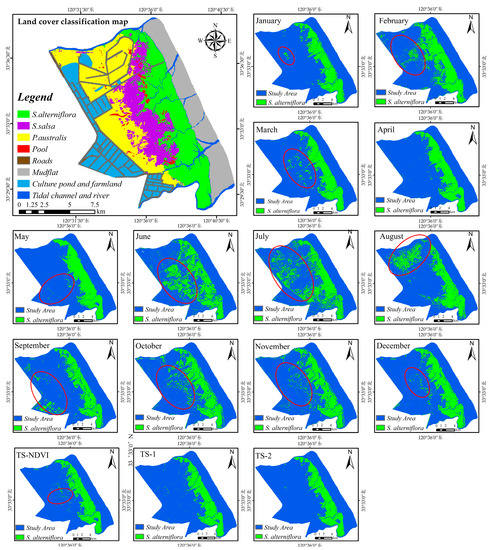 - Sun, C.; Liu, Y.; Zhao, S.; Zhou, M.; Yang, Y.; Li, F. Classification mapping and species identification of salt marshes based on a short-time interval NDVI time-series from HJ-1 optical imagery. Int. J. Appl. Earth Obs. 2016, 45, 27–41. [Google Scholar] [CrossRef]