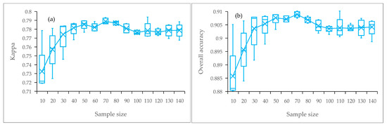 - Foody, G.M.; Mathur, A.; Sanchez-Hernandez, C.; Boyd, D.S. Training set size requirements for the classification of a specific class. Remote Sens. Environ. 2006, 104, 1–14. [Google Scholar] [CrossRef]