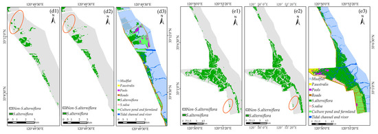- Liu, C.; Jiang, H.; Zhang, S.; Li, C.; Pan, X.; Lu, J.; Hou, Y. Expansion and management implications of invasive alien Spartina alterniflora in Yancheng salt marshes, China. Open J. Ecol. 2016, 6, 113–128. [Google Scholar] [CrossRef]
