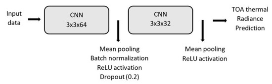 The central goal of this paper is to assess the feasibility of using the MERRA-2 data products with supervised machine learning algorithms to derive TOA radiance in the same spectral band as band 31 of the MODIS sensor. Note that MODIS band 31 is used here as an example space-based IR sensor, but the techniques may be applied to other similar sensors. Broadly, this paper uses two approaches for predicting TOA thermal radiance from MERRA-2: (1) an atmospheric radiative transfer forward modeling approach and (2) supervised machine learning. The first approach calculated TOA radiance by using the MERRA-2 atmospheric data as input to the MODerate resolution atmospheric TRANsmission (MODTRAN) [7] atmospheric radiative transfer model. For the second approach, four regression techniques were used for predicting TOA thermal infrared radiance from MERRA-2 air temperature, relative humidity, and skin temperature data as well as emissivity data from the Advanced Spaceborne Thermal Emission and Reflection Radiometer Global Emissivity Database (ASTER-GED). The first technique was linear least squares, and the second was a non-linear support vector regression (SVR) model. The remaining two regression models were deep artificial neural networks (ANNs). Since 2013, interest in deep ANNs (i.e., deep learning) has grown enormously in the field of machine learning due to their success at predicting and forecasting in various fields, and significant success has been reached with image classification [8], financial forecasting [9] and general regression problems [10]. These various approaches to predict TOA radiance are discussed here along with results and an assessment of the variables affecting the derived TOA radiance values. The two deep learning models used here were a multi-layer perceptron (MLP) and a convolutional neural network (CNN). These models learn how to hierarchically extract discriminative features for regression tasks. A detailed description of all regression models is given in Section 3.