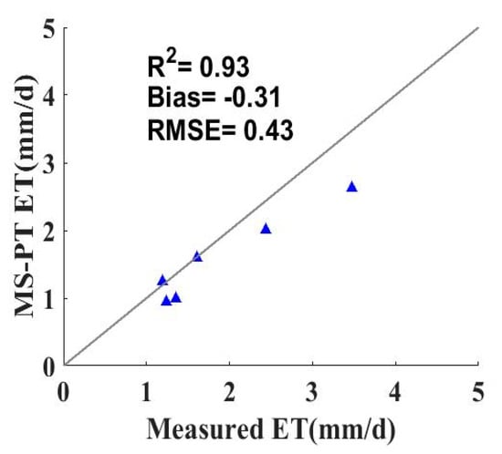 4.1. The Performance of the MS–PT Algorithm in Estimating ET