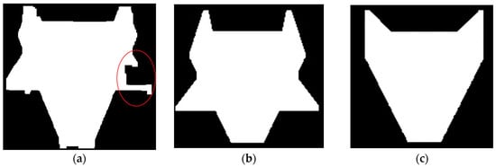Filled mages of Pylon 3, Models 2 and 4: (a) the image of Pylon 3’s head points; (b) the image of Model 2; and (c) the image of Model 4.