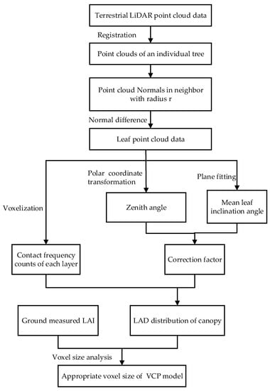 Figure 2 illustrates the developed LAD estimation workflow, which consists of leaf point cloud extraction and LAD estimation. Details are presented next.