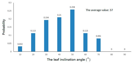 where q denotes the leaf inclination angle class, and Tq represents the total number of leaf inclination angle classes. Of each class, the range of the inclination angles is typically the same. Thus, if Tq = 18 is the number of leaf inclination angle classes existing from 0° to 90°, each class is 5° in range, or the interval is 5°. denotes the distribution of the leaf inclination angle for class q, which is the ratio of the leaf area belonging to class q to the total leaf area. stands for the midpoint angle of class q, which is the leaf inclination angle used for representing class q. With the eigenvalue method, leaves at different tree heights were randomly selected to fit the leaf planes and estimate the leaf inclination angles [1,6].