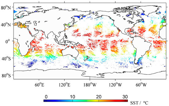 High-quality sea surface temperature (SST) data play an important role in many applications, including climate predictions [1], ocean data assimilation [2], and global change research [3]. However, raw SST data can vary significantly between different types of measurements [4], such as in-situ measurements (e.g., ships or buoys) and satellite sensors (e.g., infrared thermal radiometers or microwave radiometers on satellite platforms). In-situ SST measurements are accurate but sparse, while satellite-retrieved SST measurements have poor accuracy but provide a dense coverage globally. Therefore, one method to solve these problems is to combine different sources of SSTs to reconstruct new SST fields [4,5].