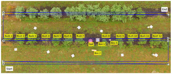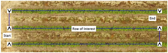 Paths flown to the side of the row of interest maintained the lowest safe altitude possible (about a meter above the bushes in the adjacent row). The flight speed was determined by the need for overlap, the minimum possible flight height, and the camera sampling rate.