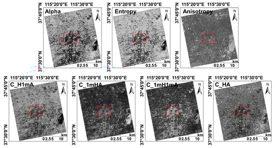 The images of H/A/Alpha polarization decomposition (the red dashed rectangle represents the main PMF region).
