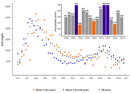 3.3.2. Factors Impacting Rainy Season SPM Variability