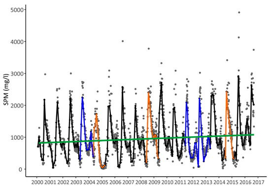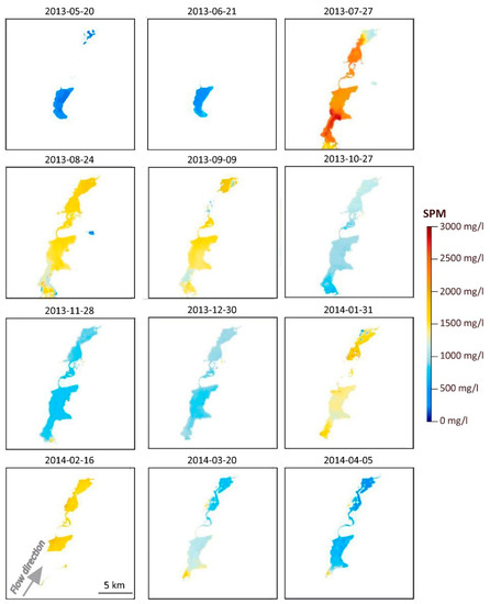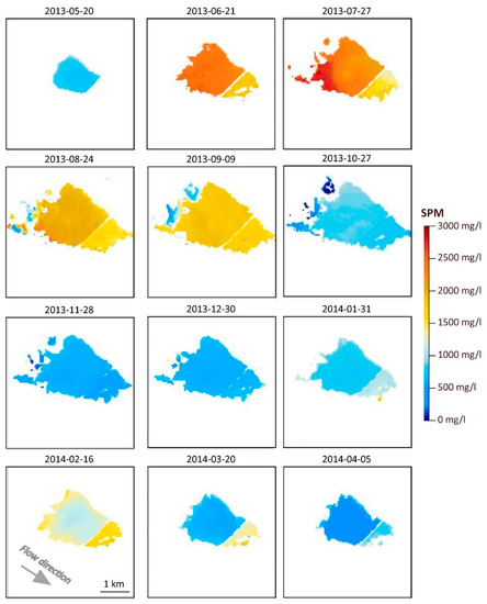 - Wang, J.-J.; Lu, X.X.; Liew, S.C.; Zhou, Y. Retrieval of suspended sediment concentrations in large turbid rivers using Landsat ETM+: An example from the Yangtze River, China. Earth Surface Process. Landf. 2009, 34, 1082–1092. [Google Scholar] [CrossRef]