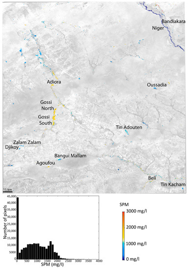 Robert, E.; Kergoat, L.; Soumaguel, N.; Merlet, S.; Martinez, J.-M.; Diawara, M.; Grippa, M. Analysis of Suspended Particulate Matter and Its Drivers in Sahelian Ponds and Lakes by Remote Sensing (Landsat and MODIS): Gourma Region, Mali. Remote Sens. 2017, 9, 1272. https://doi.org/10.3390/rs9121272