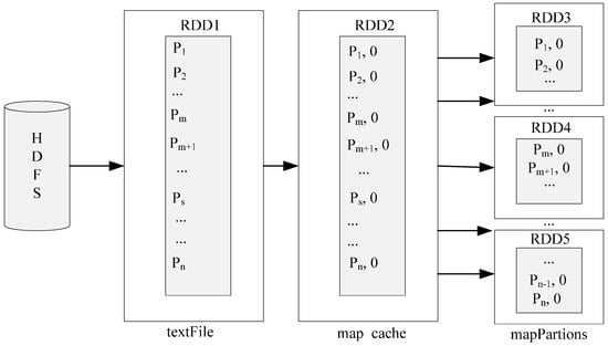 An RDD conversion flowchart of the data partitioning stage is shown in Figure 8.