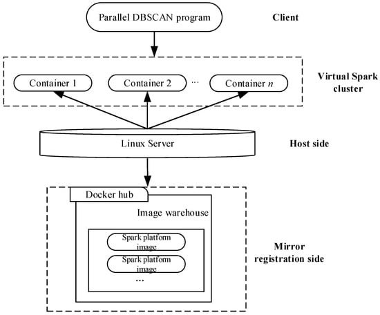 - Parallelization on high-performance cluster platforms. Xu et al. proposed a network-based fast parallel-DBSCAN (PDBSCAN) algorithm for use on cluster systems with master-slave architectures. First, the entire data area is divided into N disjointed data blocks, where each data block is processed by each computing node. After a given data block has been processed, the results are merged on the master node. This parallel algorithm requires extra communication time, where the inefficiencies related to combine the data with the main node data reduce the overall processing efficiency of the algorithm []. Based on the data-partition DBSCAN algorithm, Erdem & Gündem used high-performance clusters to improve the efficiency of the algorithm []. In these studies, parallel platforms based on high-performance clusters can help to improve the algorithm, but the conventional cluster platform has issues such as poor scalability, bad fault tolerance, etc. The shared architecture is also likely to cause bottlenecks in data transfer.