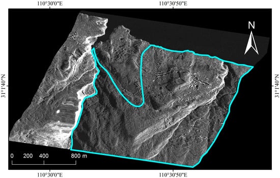 The Tanjiahe landslide area is representative of the hillsides of the Three Gorges Region, sparsely populated by small villages filled with single-story buildings amongst dense orange trees. The Tanjiahe landslide area is an ancient landslide, located on the southern bank of Yangtze River with centre coordinates of 31.030°N, 110.509°E, about 56 km upstream from the Three Gorges Dam. The landslide body is underlain by mudstone, sandstone, and siltstone. The trailing edge is 432 m high. The front edge extends into the Yangtze River at an altitude of 135 m. The landslide body is about 400 m wide and 1000 m long, with a slope ranging from 10° to 25° and a volume of 9 × 107 m3. The sliding direction is 340° clockwise counting from the North, predominantly towards the Yangtze River. As shown in Figure 1, the boundary of the Tanjiahe landslide looks like a boot [,].
