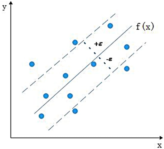 One-dimensional linear regression with -insensitive band for the support vector machine (SVM) algorithm.