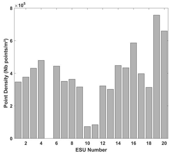 Point density for the dense point cloud generated by ®Agisoft PhotoScan for each Elementary Sampling Unit.