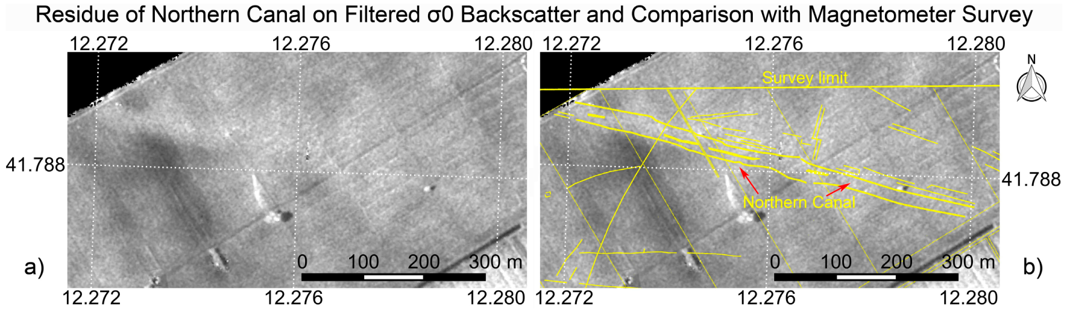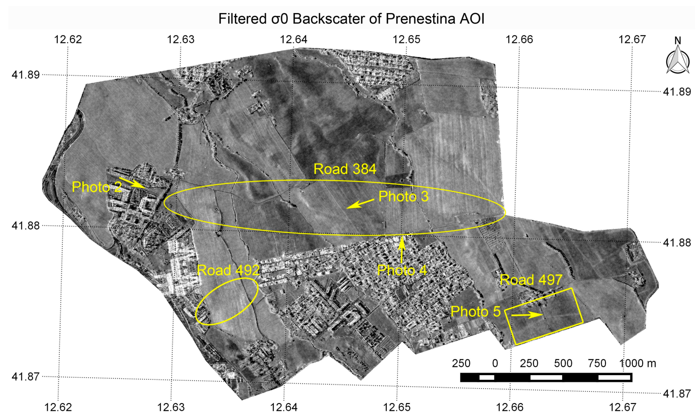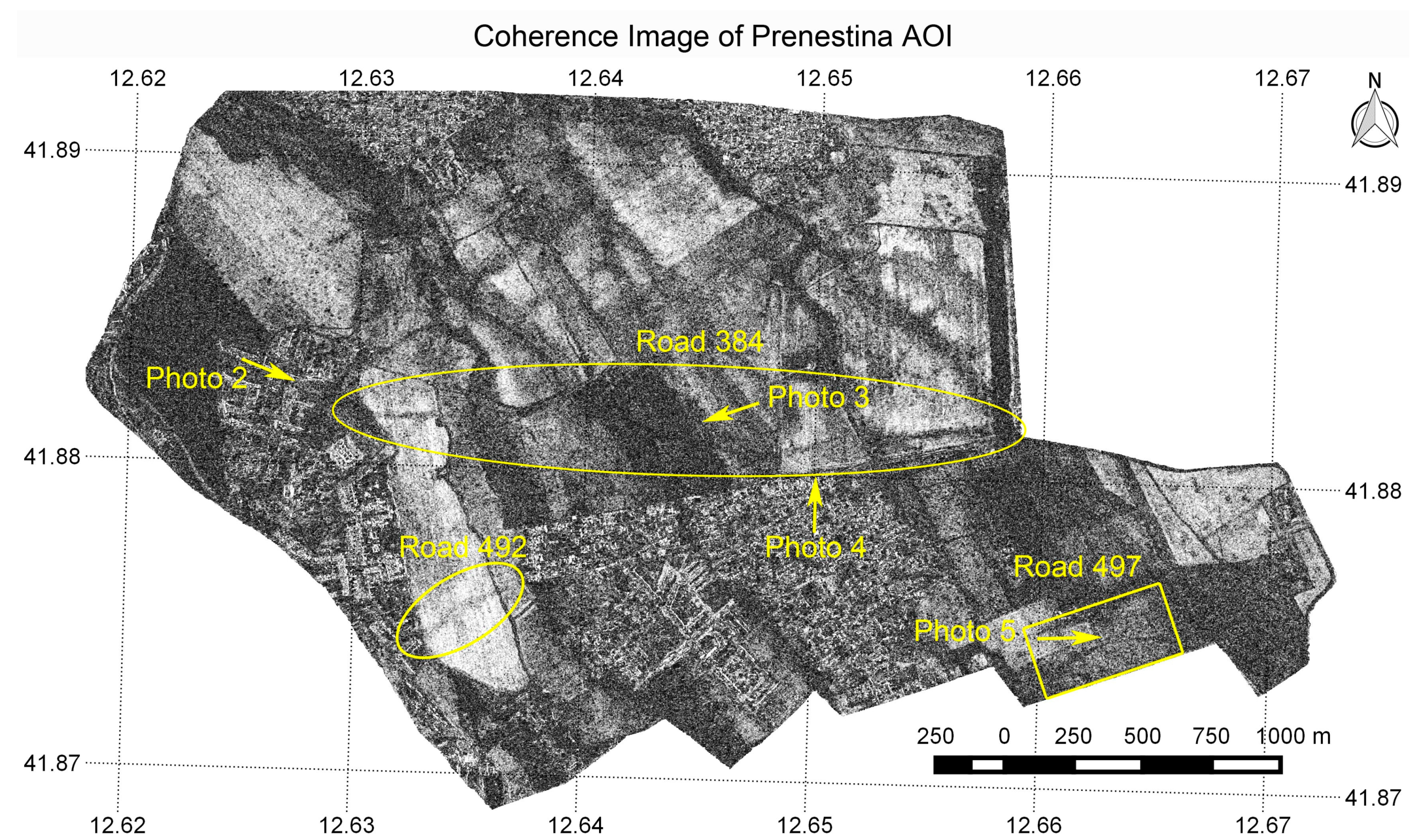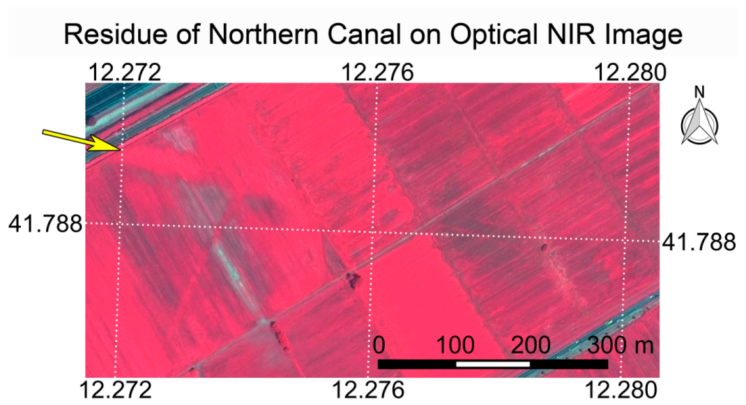 - Stewart, C.; Di Iorio, A.; Schiavon, G. Analysis of the utility of COSMO SkyMed stripmap to detect buried archaeological features in the region of Rome. In Proceedings of the 4th EARSeL Workshop on Cultural and Natural Heritage, Matera, Italy, 6–7 June 2013; Lasaponara, R., Masini, N., Biscione, M., Hernandez, M., Eds.; European Association of Remote Sensing Laboratories (EARSeL): Matera, Italy, 2013; pp. 203–212. [Google Scholar]
