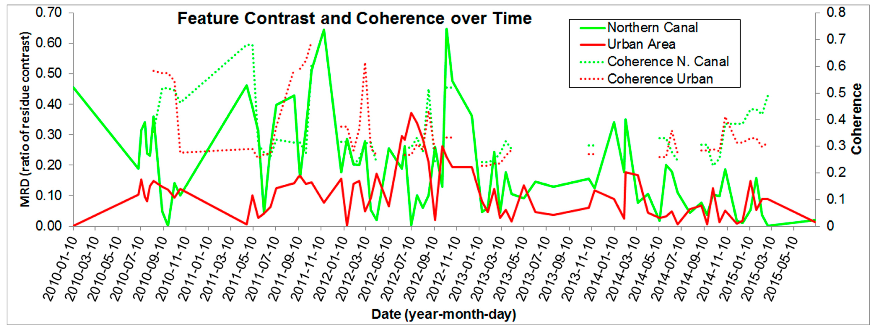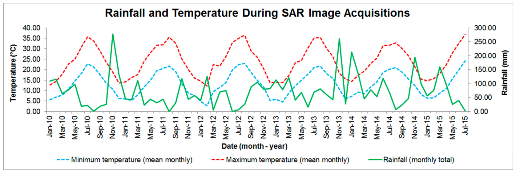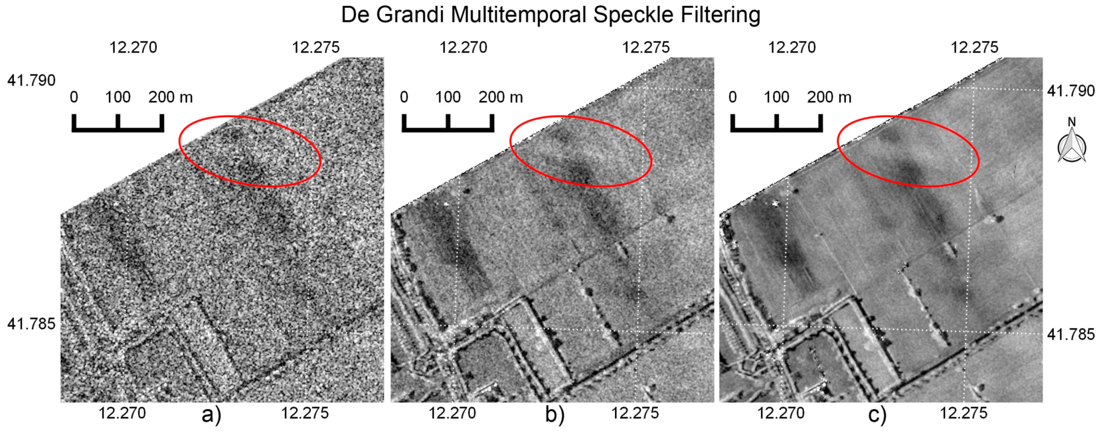 - De Grandi, G.; Leysen, M.; Lee, J.; Schuler, D. In Radar reflectivity estimation using multiple sar scenes of the same target: Technique and applications. In Proceedings of the 1997 IEEE International Geoscience and Remote Sensing, Remote Sensing—A Scientific Vision for Sustainable Development (IGARSS’97), Singapore, 3–8 August 1997; pp. 1047–1050.