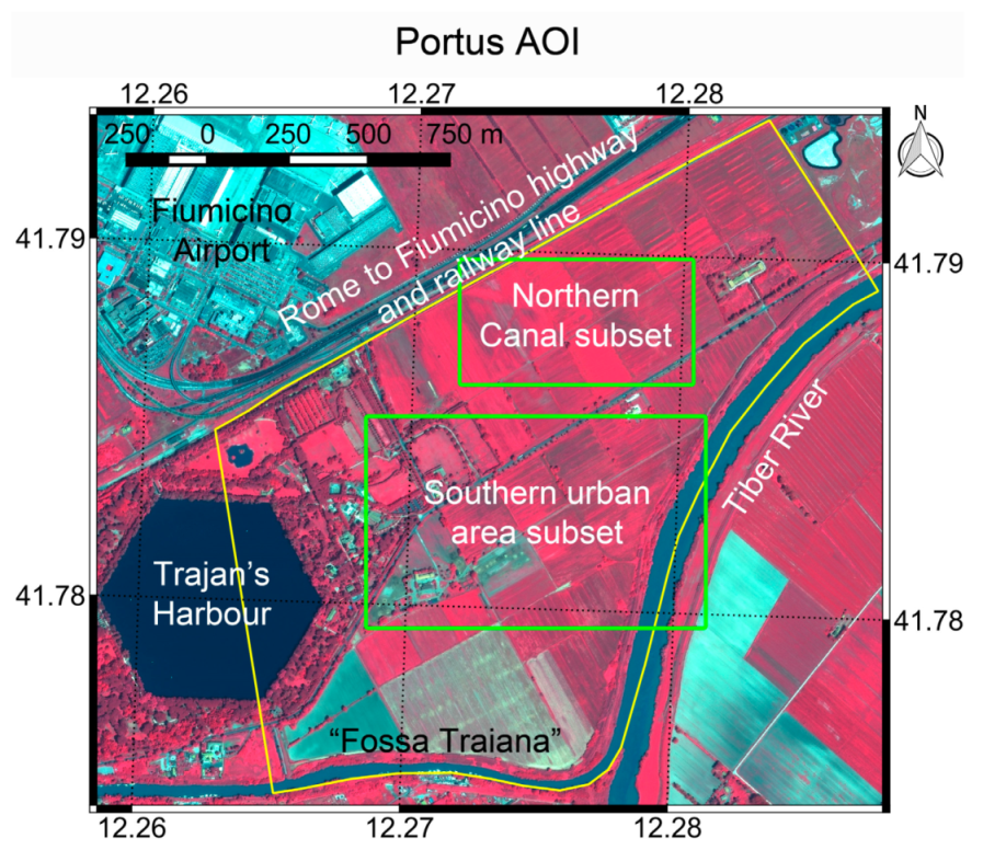 - Keay, S.J.; Parcak, S.H.; Strutt, K.D. High resolution space and ground-based remote sensing and implications for landscape archaeology: The case from Portus, Italy. J. Archaeol. Sci. 2014, 52, 277–292. [Google Scholar] [CrossRef]
