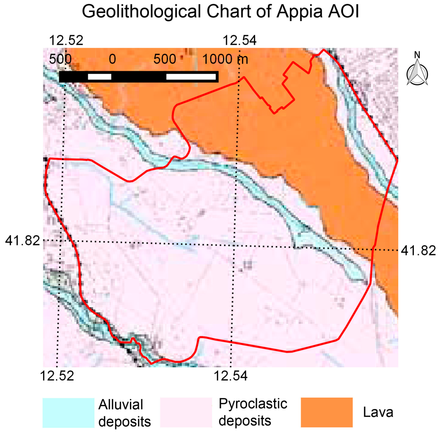 - Modigliani, D. Carta geolitologica del territorio comunale. In Piano Regolatore Generale; Comune di Roma: Rome, Italy, 2008. [Google Scholar]