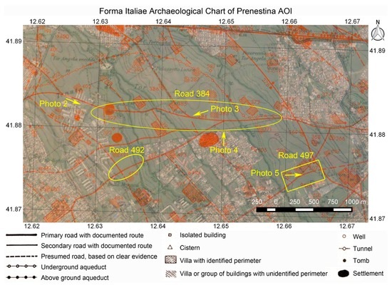 - Quilici, L. Evoluzione della tecnica stradale Nell’Italia centrale. In Atlante Tematico di Topografia Antica 1. Tecnica Stradale Romana; L’Erma di Bretschneider: Rome, Italy, 1992; Volume 13. [Google Scholar]