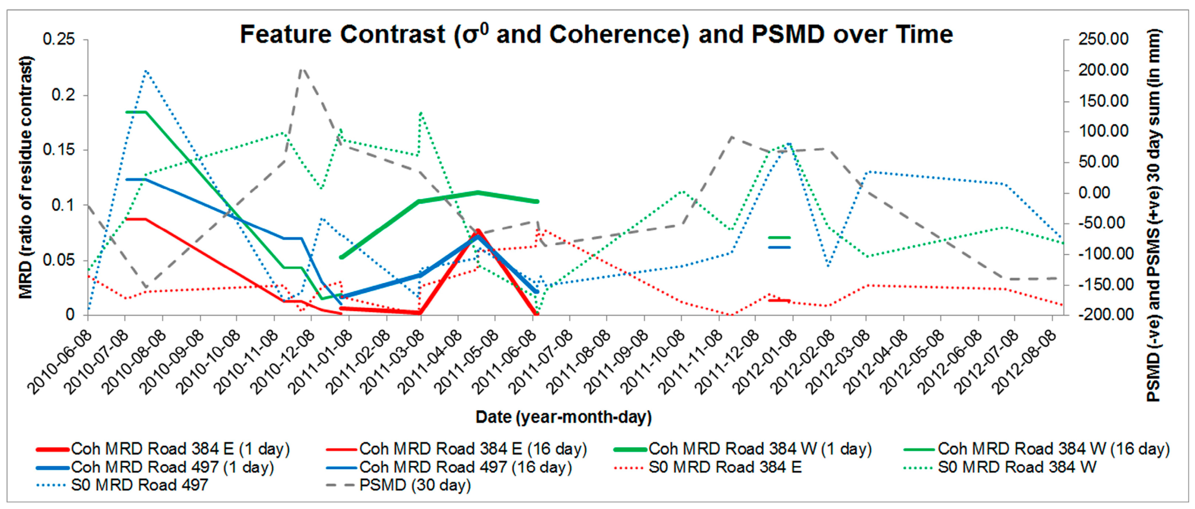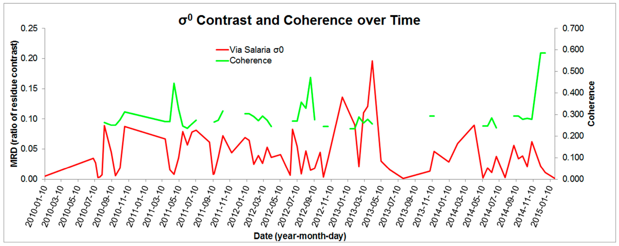 5.1.2. Filtered σ0 Residues Due to Low Relative Backscatter