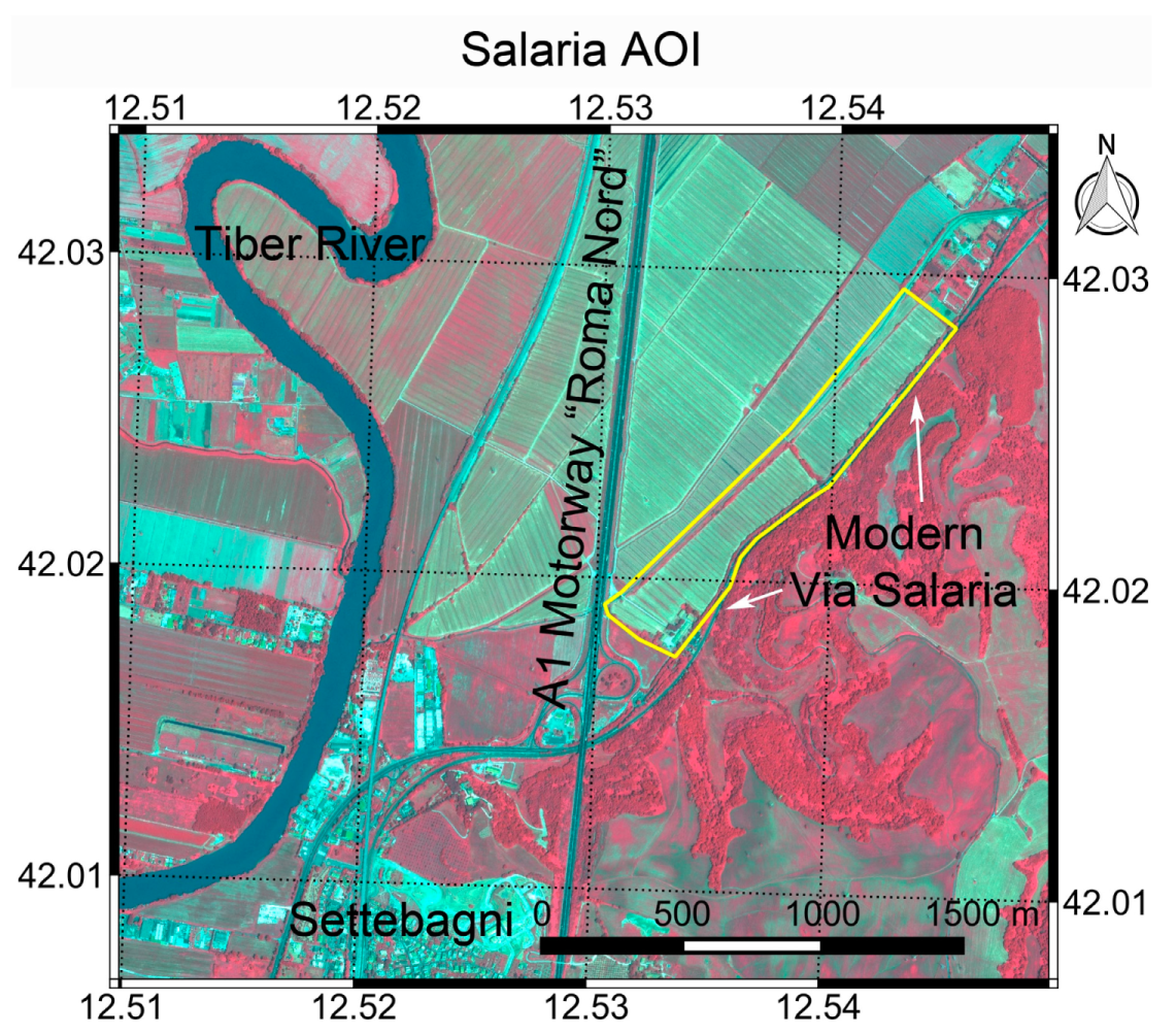 - Hyppönen, P. Salaria via Usque ad Lapidem XVIII, a Reconstruction of the Ancient Road Line between Porta Collina and the 18th Milestone of the Road; University of Oulu: Oulu, Finland, 2014. [Google Scholar]