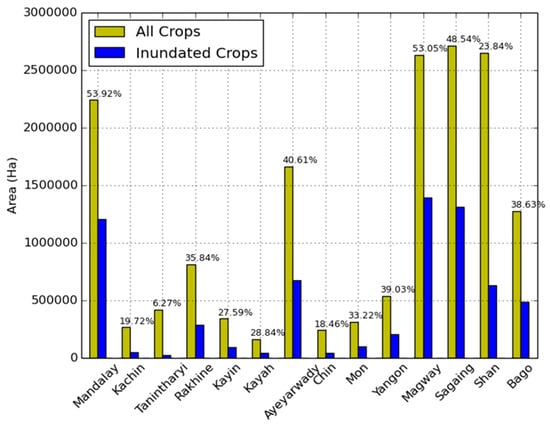 Myanmar has a complex and dynamic socioecological structure in which agriculture plays a central role. Myanmar is 676,578 km2 in size and historically was a top rice producer; however, yield and production has not kept up with neighboring regions in the past few decades. Agriculture in Myanmar accounts for a large percent (50%–60%) of Gross Domestic Product and supports upward of 70% of the labor force []. The agriculture industry is sensitive to climatic change, weather variability, disaster, and economic stressors which present chronic risk. For example, milled production was reduced in 2015 by 400,000 metric tons due to flooding [] and as a result, domestic prices increased and an export ban was temporarily put in place. Recent changes in political structure have re-emphasized agriculture as a focus industry to enhance livelihoods with technology infusion such as improvements in irrigation infrastructure, genetic varieties, and management practices. Tools to accurately assess and monitor production, risks, and ecosystem services can thus play a major role in supporting policy, climate smart agriculture, and sustainable growth in Myanmar.