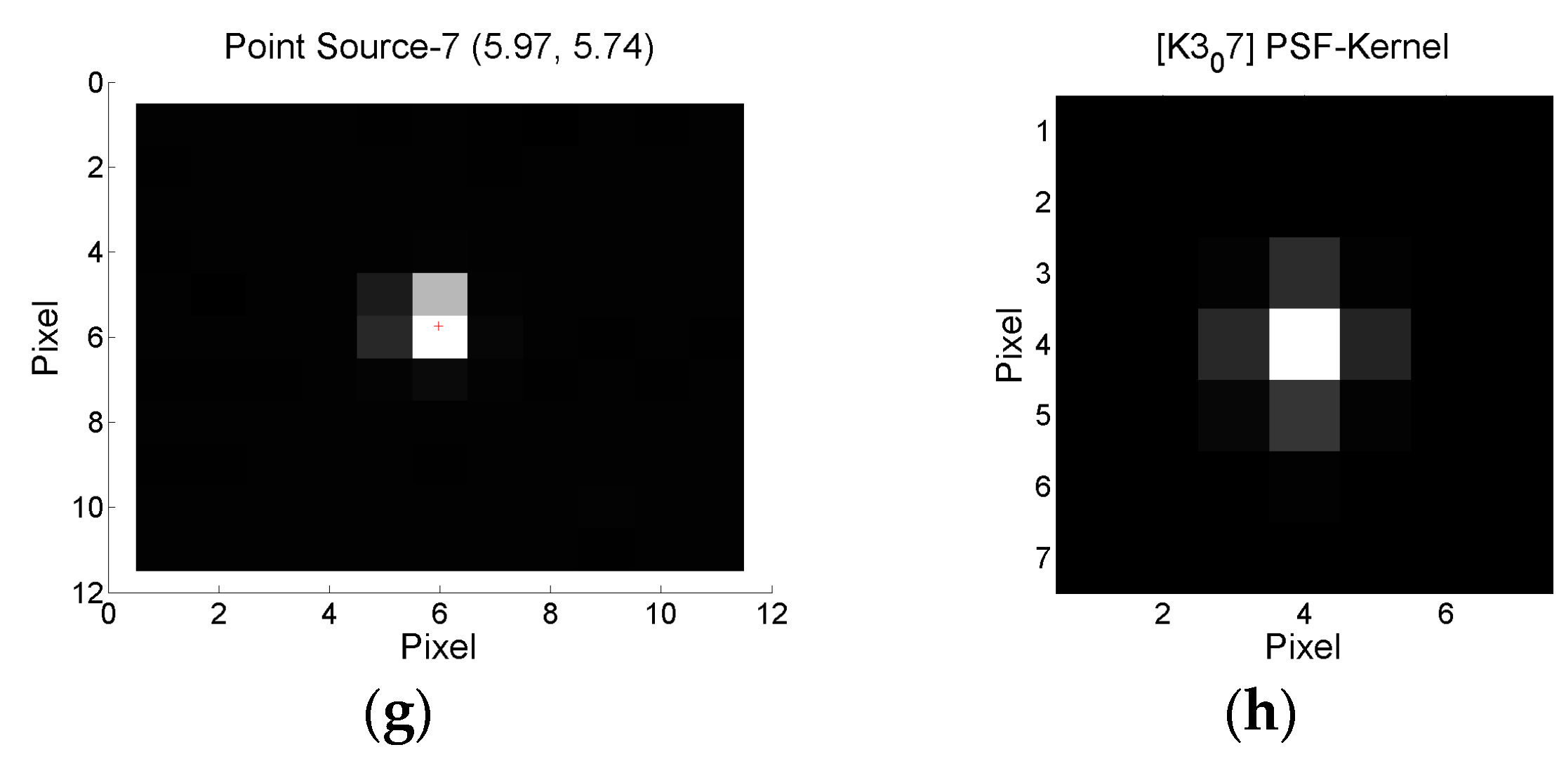 - Du, H.; Voss, K.J. Effects of point-spread function on calibration and radiometric accuracy of CCD camera. Appl. Opt. 2004, 43, 665–670. [Google Scholar] [CrossRef] [PubMed]