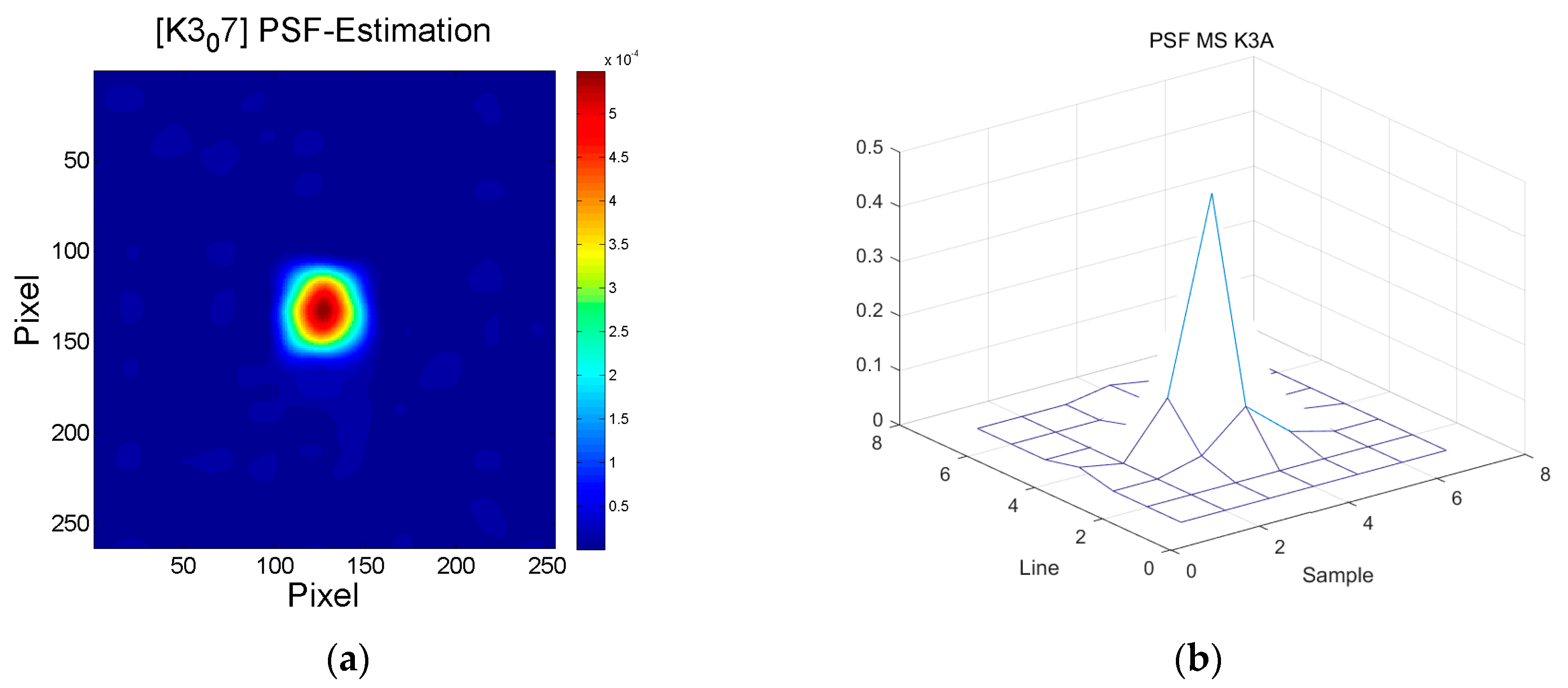 2.5. Retrieval of PSF with KOMPSAT-3A MS Bands by Observing Stars