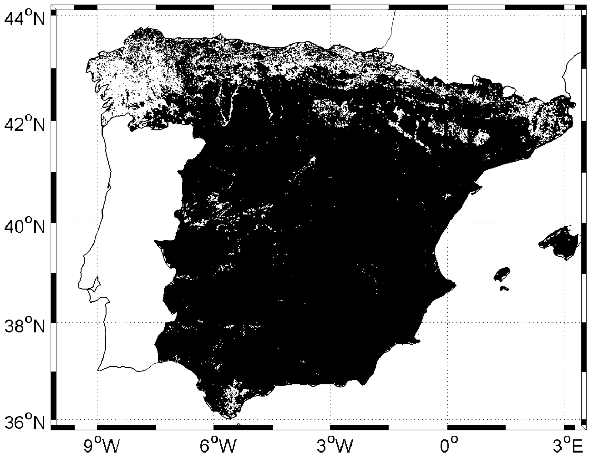 Spain has remarkable landscape diversity and a wide range of ecosystems due to its geographic position in southwestern Europe, climate, geological features and relief, with elevation varying from sea level to 3479 m. A vast plateau surrounded by a number of mountain ranges dominates the central part of Spain. Synoptic air masses create a NW to SE gradient of water availability (total annual precipitation varies from 2000 mm to 120 mm), ranging from Atlantic humid climate zones on the north coast to Mediterranean climate on the east coast, the SE corner becoming the most arid zone of Europe [37]. Spain has a mosaic of land cover that includes significant areas of traditional and newly developed agriculture (49% of land), dominated by non-irrigated land. These areas are embedded in a matrix of natural and semi-natural vegetation (47% of land), mainly occupied by shrublands, and broadleaved or coniferous forests [38]. Vegetation distribution is strongly controlled by aridity, and drought conditions have a marked influence on vegetation cover and activity. The droughts that affect the semiarid areas represent an important factor in environmental degradation.