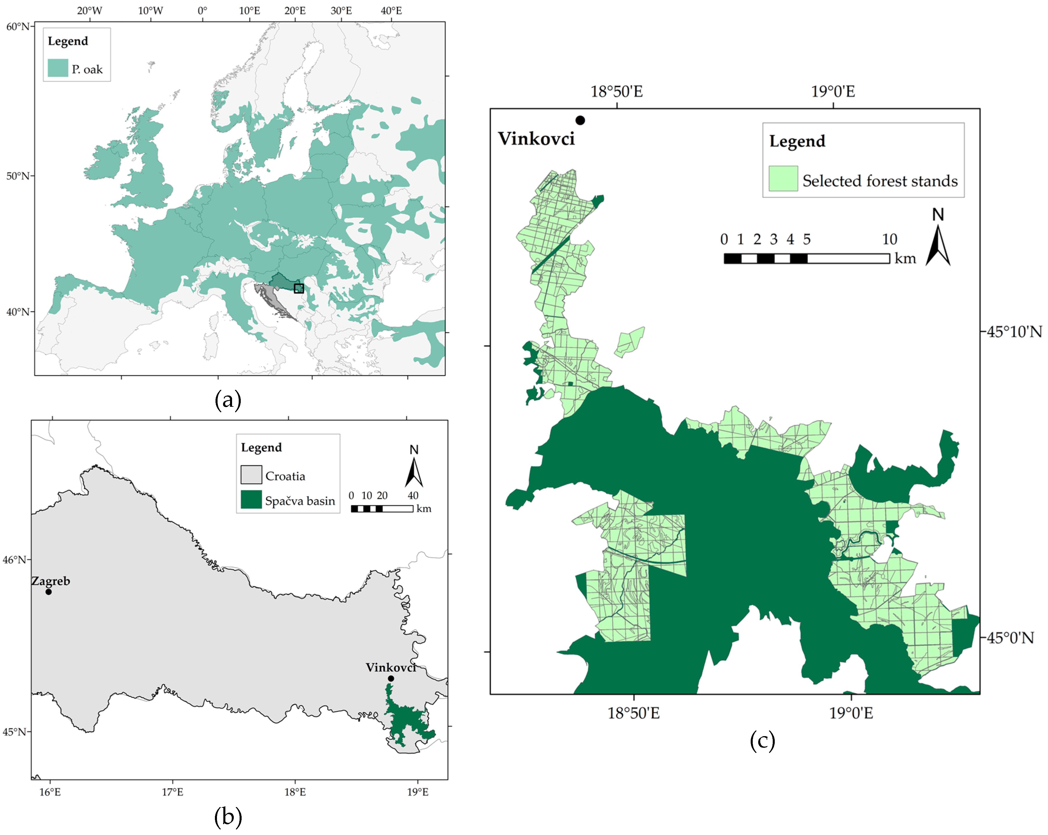 Figure 1). Covering the total area of approximately of 40,000 ha, Spačva basin is one of the largest coherent complexes of lowland pedunculate oak forests in Europe [