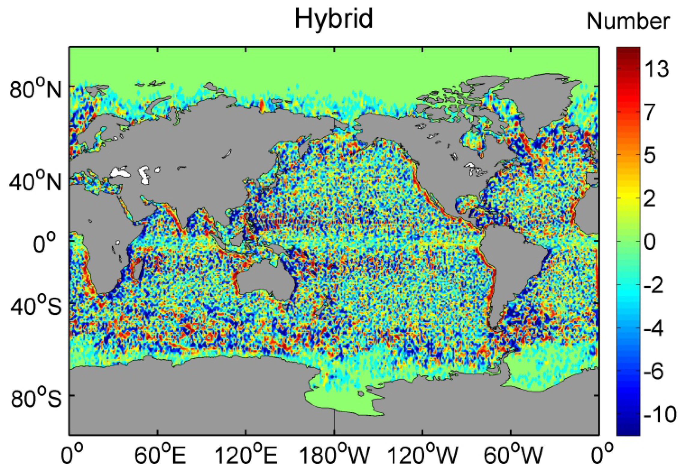 - Chelton, D.B.; Schlax, M.G.; Samelson, R.M.; de Szoeke, R.A. Global observations of large oceanic eddies. Geophys. Res. Lett. 2007, 34. [Google Scholar] [CrossRef]