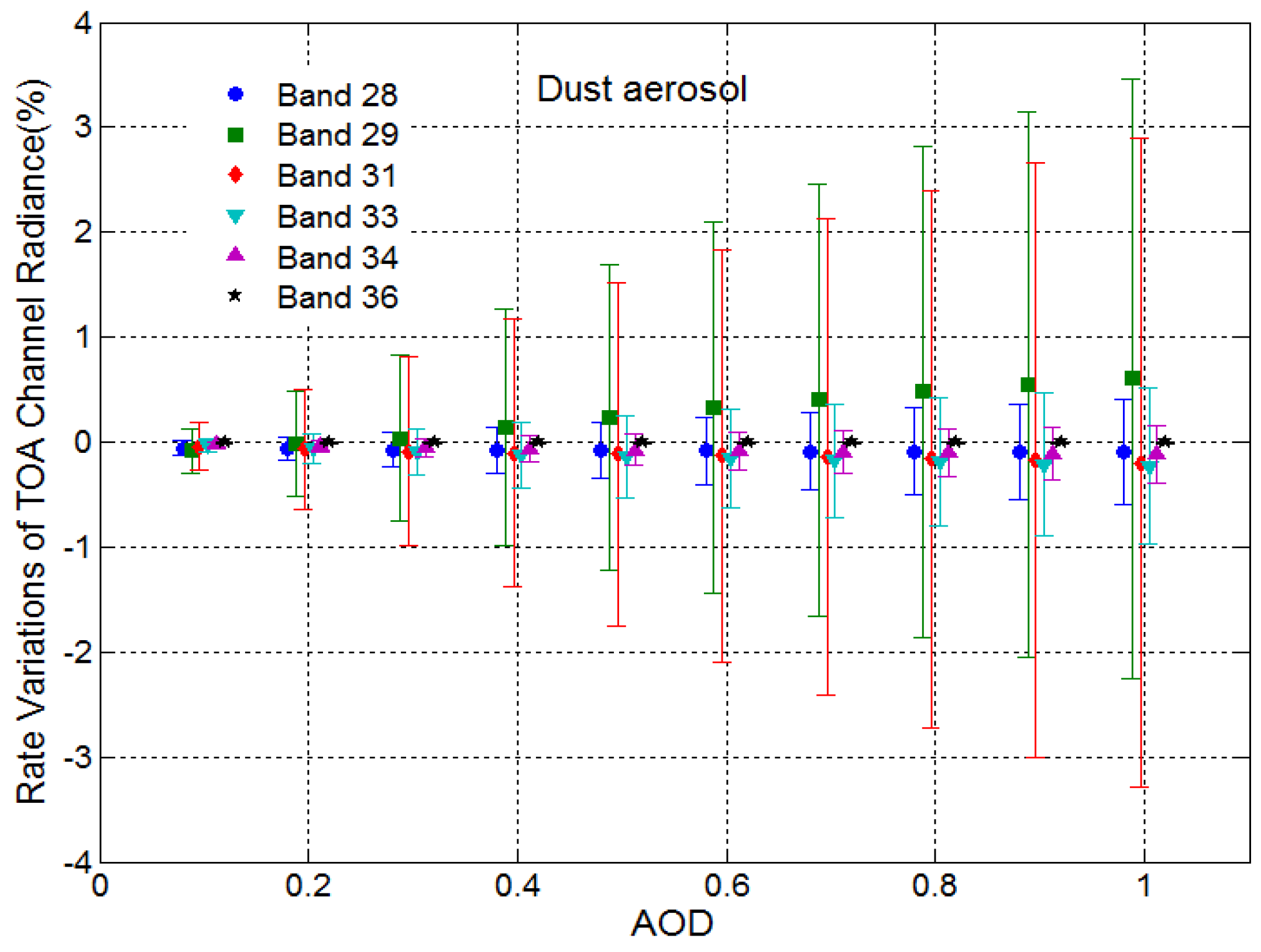- MODIS calibrated radiances (MOD021KM/MYD021KM), which contains geo-located and calibrated earth view observations, and creates tiled MODIS images at 1-km resolution data. The observed thermal TOA radiances are used in our study.