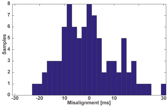 Misalignment record of each path in milliseconds. The average misalignment is set to zero.